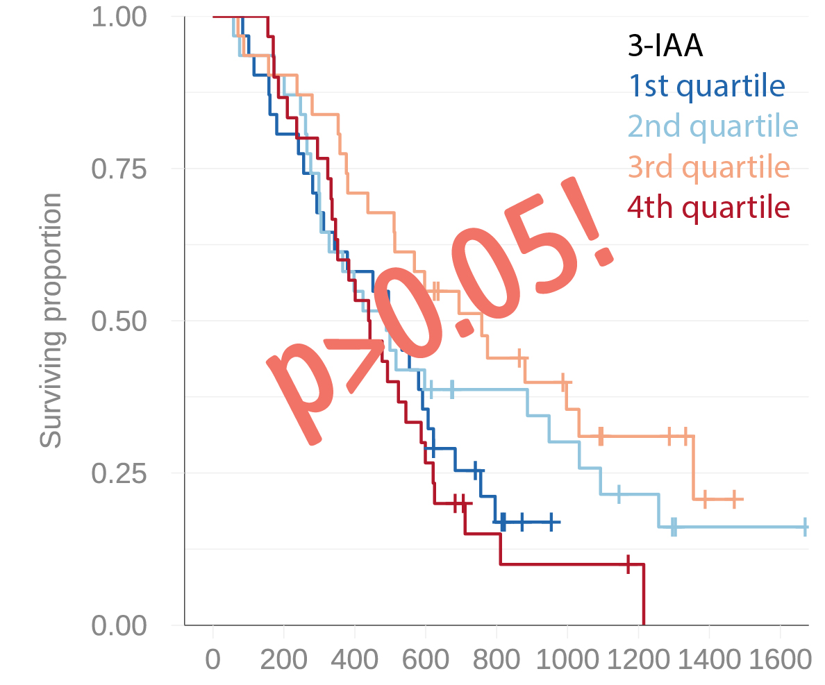 A 2022 Nature study found that circulating levels of microbial 3-IAA associated with improved outcomes in people with metastatic pancreatic cancer undergoing chemotherapy. We measured circulating 3-IAA in borderline resectable or locally advanced pancreatic cancer, but found no association with outcomes.