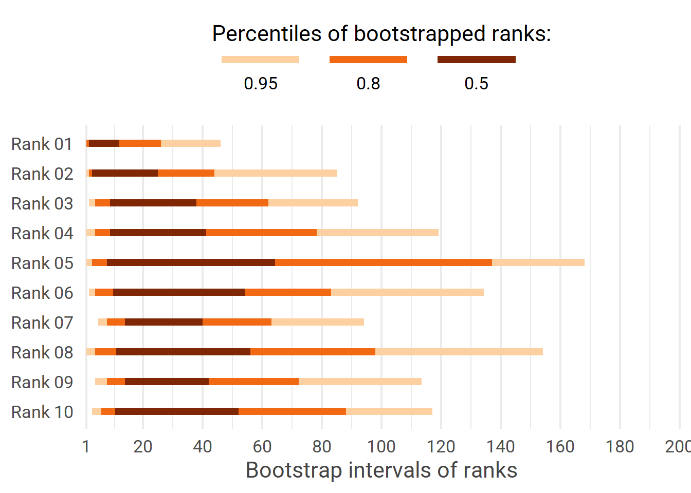 Now we wish to estimate how reliable these ranks are using the bootstrap.