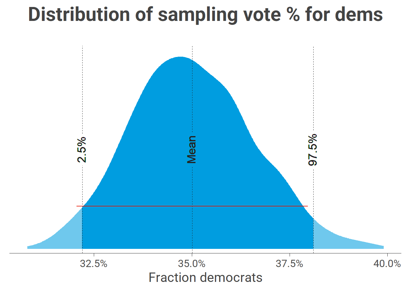 We start off by creating an artificial dataset where exactly 35% of a population votes Dem:
